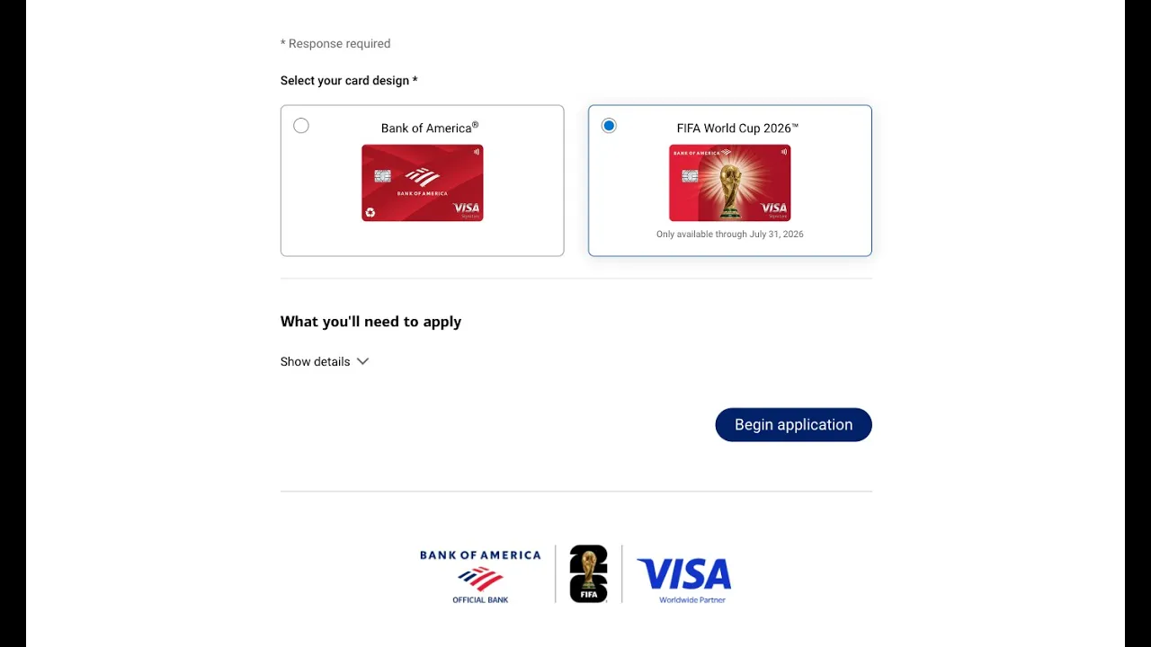 Kicking off Bank of America's first credit card design-selection pattern with custom selectors for the FIFA World Cup 2026™ design.