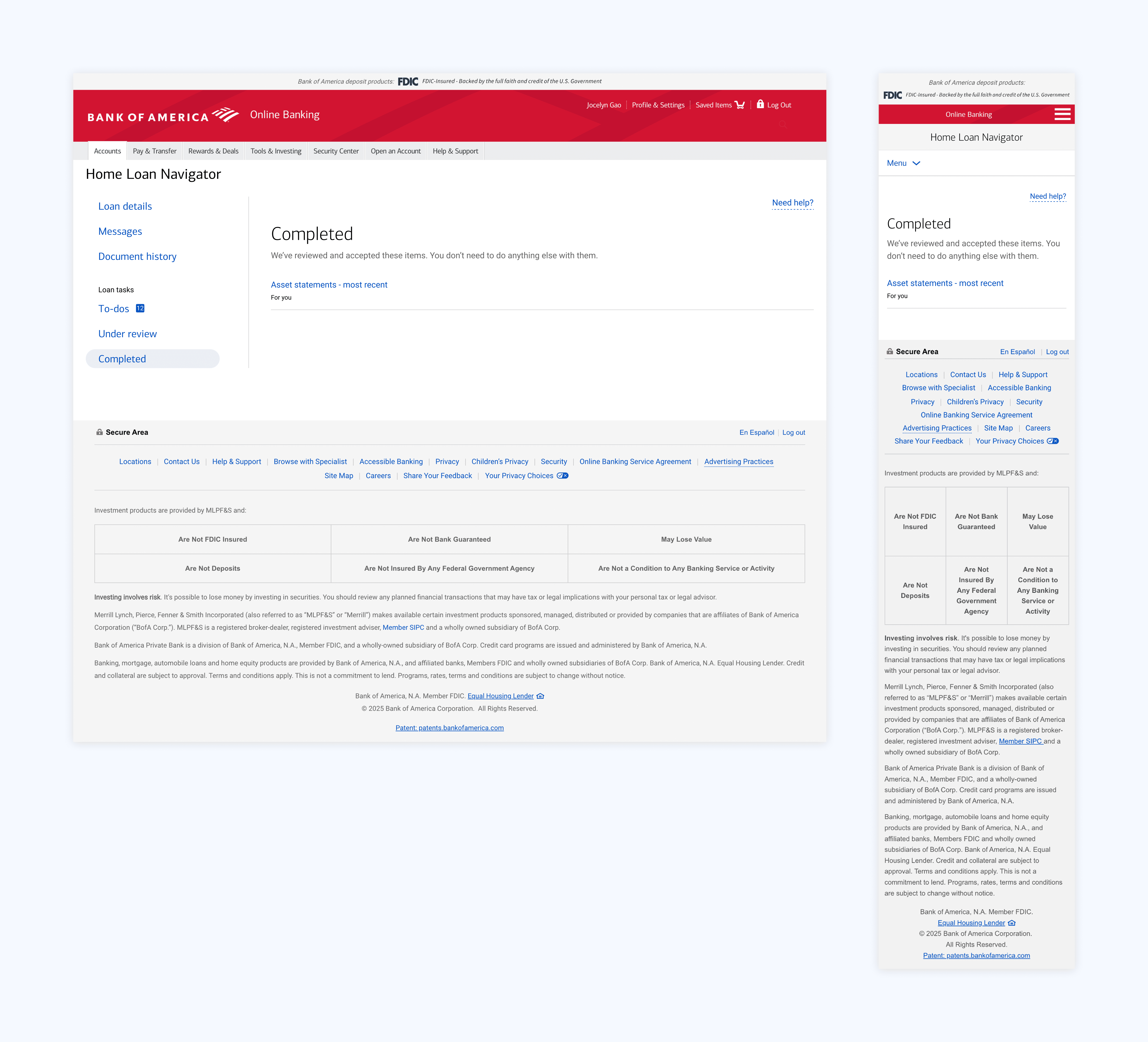 Our project also gained organizational recognition: I presented the enhancements at Bank of America’s Digital All-Hands to 380+ colleagues and leaders, marking one of the first times XD, rather than Digital Product, presented a body of work. Afterwards, the Head of XD personally congratulated me for the clarity and impact of the work.